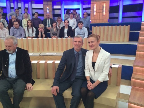 На фото: Алексей Журавлев и Мария Бутина в студии Первого канала