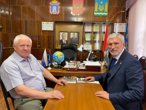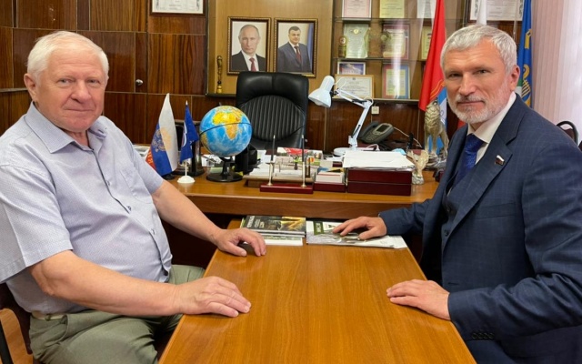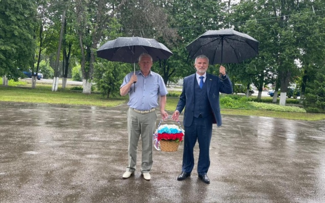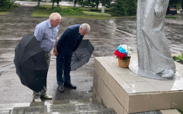 С главой района Сергеем Чиркиным Алексей Журавлев возложил цветы к монументу павших в Великой Отечественной войне.