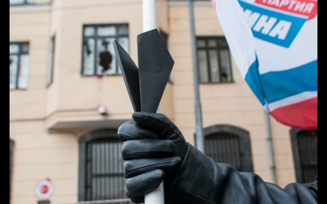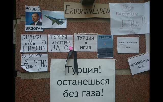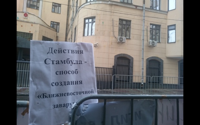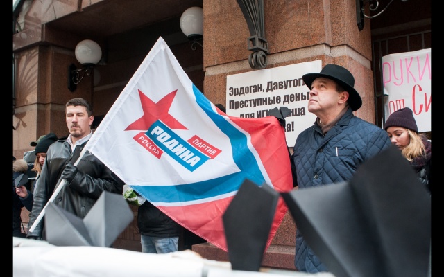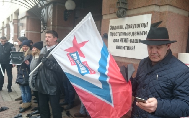 Сегодня, 26 ноября, у посольства Турции в Москве состоялась акция "Чёрная метка", организованная партией "РОДИНА".