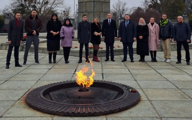 Во второй день, команда Калининградской "РОДИНЫ" вместе с гостями из столицы возложили цветы к Вечному огню у памятника 1200 гвардейцам.