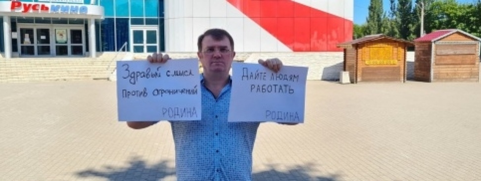 Общественник Магамед Ахматов провел у закрывшегося кинотеатра одиночный пикет против новых антиковидных мер.