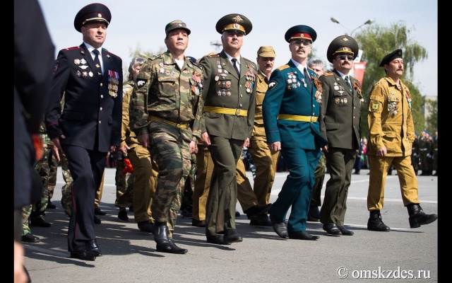 В параде приняли участие курсанты Кадетского корпуса, Омского танкового инженерного института, ракетчики, пограничники, подразделения МЧС, казаки и другие части.
