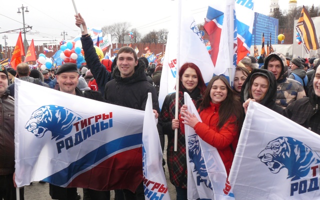 18 марта 2016 года в Москве на Васильевском спуске у самых стен Кремля молодёжное крыло партии "РОДИНА" - движение "ТИГРЫ РОДИНЫ" в одном строю со своими старшими товарищами по партии приняло участие в праздновании Дня воссоединения Крыма с Россией.
