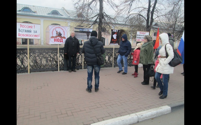 2 ноября 2014 года в городе Рязани на пл. Ленина активистами рязанского регионального отделения партии "РОДИНА", РОО "Союз офицеров", "Союз славян", НОД, был проведён массовый пикет в поддержку выборов в ДНР и ЛНР. Активисты выступили с поддержкой народа Новороссии в борьбе с киевской хунтой.